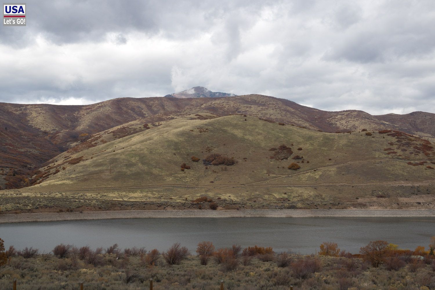Ich fahre rasch zurück und verkneife mir weitere Abstecher. Obwohl - das riesige Strawberry Reservoir sieht schon ganz reizvoll aus, als ich daran vorbeifahre. Aber das Wetter wird immer schlechter. Es nieselt und die Wolken hängen auf 8000 ft. so tief, dass man sie greifen kann. Außerdem ist es mit 40° F saukalt.