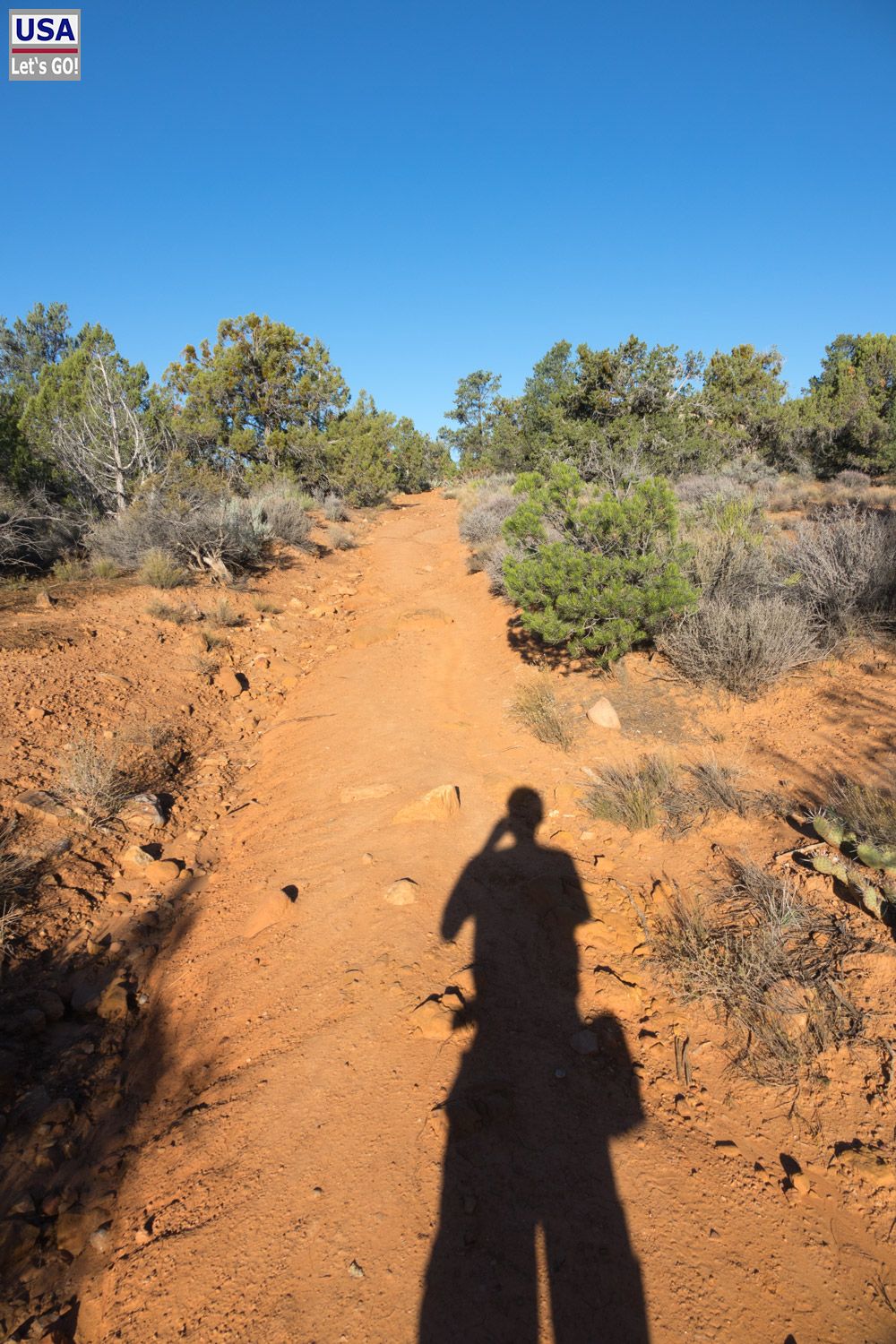 Der Trailbeginn war ursprünglich eine Jeep-Piste, bis der Eingang mit großen Bouldern versperrt wurde. Jetzt geht es nur noch per pedes. Teilweise durch tiefen Sand, meistens ein wenig bergauf - immer den Fußspuren nach. Den GPX-Track brauche ich definitiv noch nicht.
