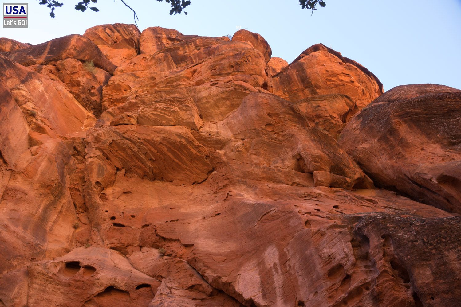 Ich fahre die gleiche Strecke zurück, in Leeds aber nicht wieder auf die I15, sondern unter dem Interstate hindurch zu meinem nächsten Ziel: Red Cliffs. Parallel zur Interstate geht es Richtung Harrisburg, die Red Cliffs sind auch schon ausgeschildert. Dann muss unter zwei Brücken durch, was für RVs problematisch sein könnte.