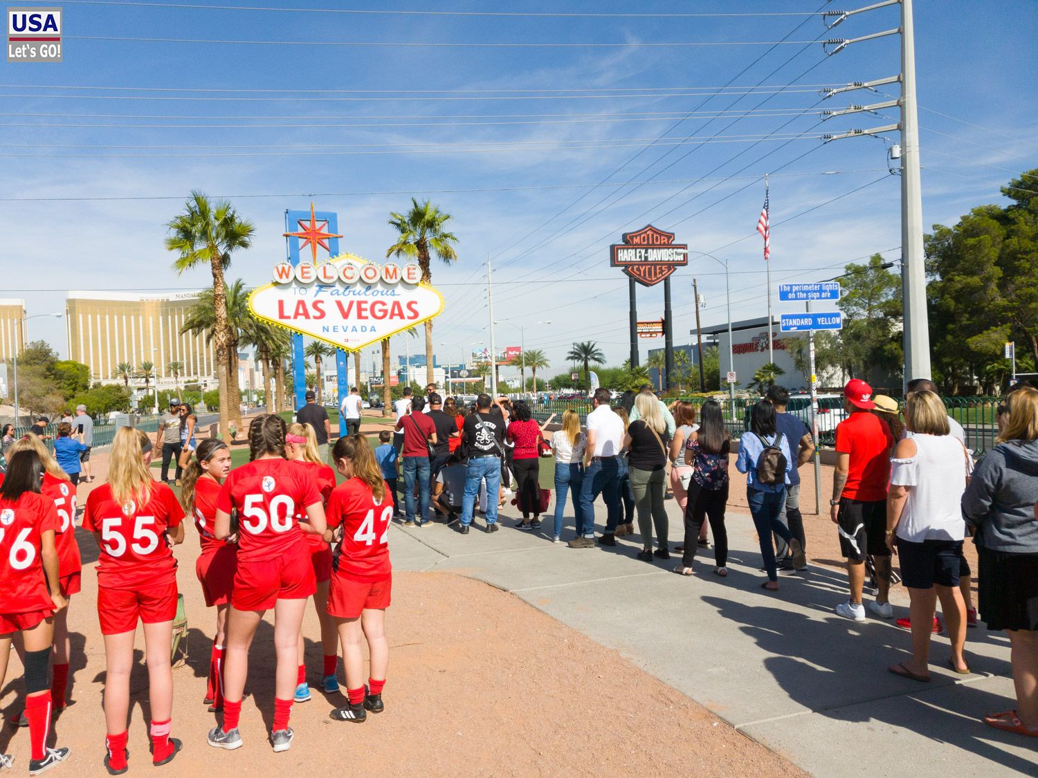 Nachdem ich den Wagen von dem letzten Müll befreit habe - auch von meinen kaputten, ausgelatschten Laufschuhen - geht es zurück zu Sixt. Auf dem Weg dorthin mache ich einen kleinen Schlenker zum Las Vegas Sign. Was da los ist - unglaublich! Die Menschen stehen in einer langen Schlange für´s Gruppenfoto oder Selfie.
